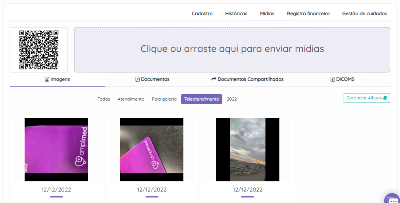 Qualquer imagem enviada durante a teleconsulta ficará salva automaticamente nas mídias do paciente: