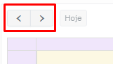 Outros dois botões de navegação são os de avançar (seta apontando para a direita) ou de retroceder (seta apontando para a esquerda) para o próximo período da visualização. Ou seja, será avançado ou retrocedido um dia, uma semana ou um mês, dependendo da visualização de agenda escolhida.