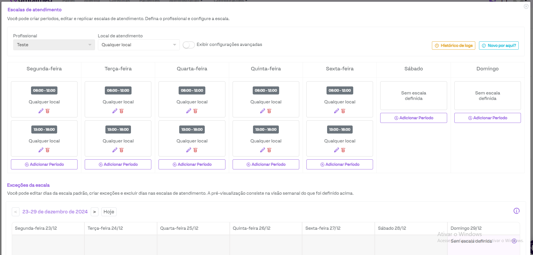 para saber como configurar as escalas temos um artigo completo para lhe auxiliar: Como disponibilizar escalas de atendimento no Agendamento Online