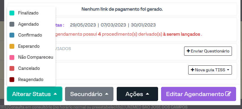Da mesma forma que se altera um status, pode se alterar o agendamento, basta clicar no botão roxo após qualquer edição.