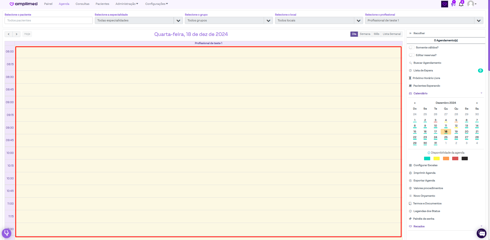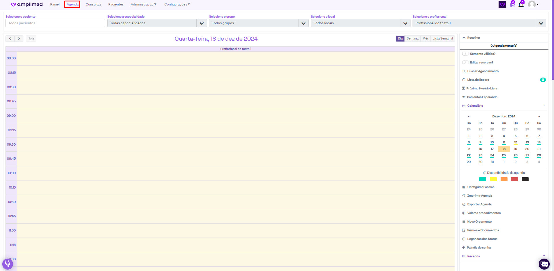 Acesse a aba "Agenda" e escolha o horário desejado para criar o agendamento no quadro de horários, como ocorre na criação de um agendamento simples.