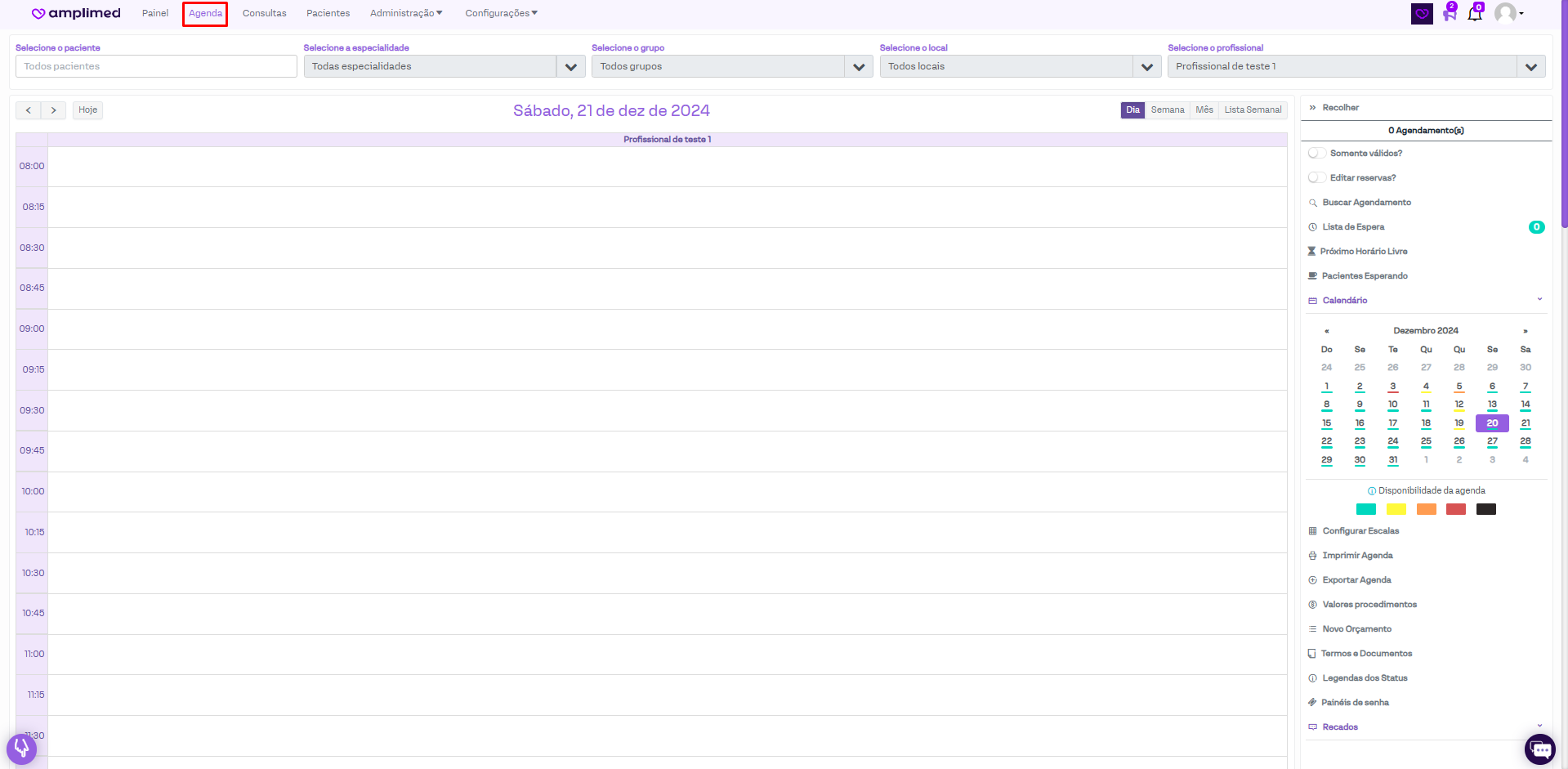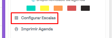 Primeiramente será preciso realizar um ajuste na opção "Configurar escalas", na aba "Agenda". Para isso, à sua direita, nas funções da parte da agenda clique nesta opção.