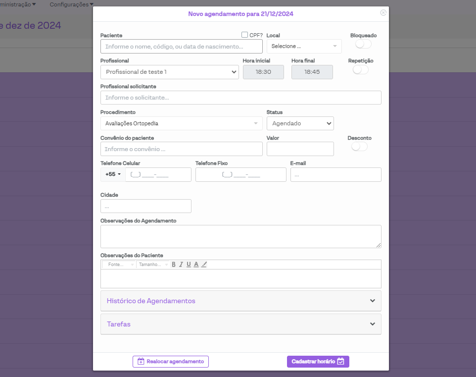 Será aberta a janela de criação de agendamento habitual e basta preencher as informações do atendimento que deseja criar.