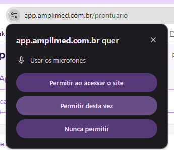 Assim que o prontuário for acessado, será solicitada a permissão para uso do microfone. Essa permissão é essencial para que a IA realize a transcrição da conversa.