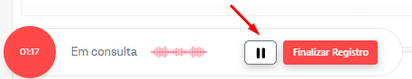 Se necessário, pause a transcrição clicando no ícone de pausa.