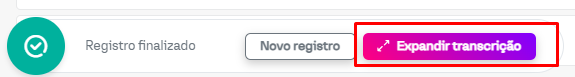 Ao concluir a transcrição, poderá ou Gerar um Novo Registro, ou Expandir a Transcrição para visualizar os dados que a IA captou: