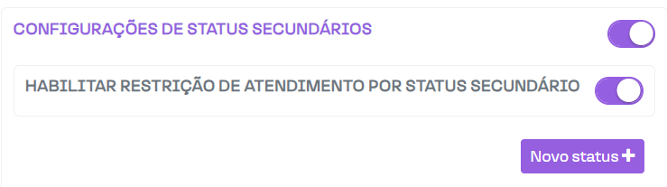 Clique em Novo status para adicionar um novo status secundário e escolha se ele permitirá ou bloqueará um atendimento: