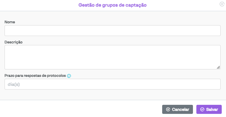 Nome: Permite incluir o nome do grupo de captação para posterior identificação.