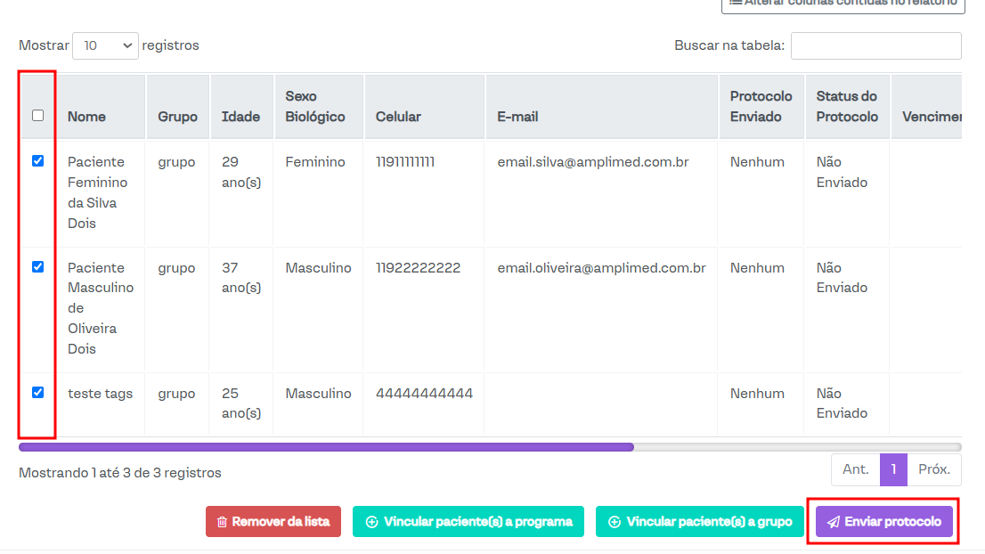 Com os pacientes inseridos no módulo de captação, é possível aplicar filtros personalizados para gerenciar o envio de protocolos APS, seja de forma individual ou em massa.
