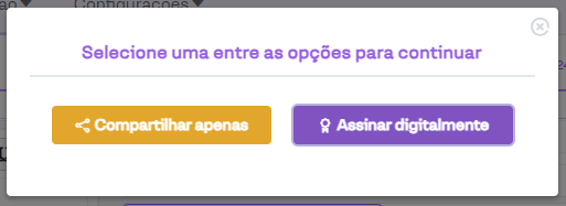 Clicando em compartilhar será aberta uma nova janela onde o usuário poderá escolher se deseja compartilhar o documento com o paciente sem a assinatura ou se antes deseja assinar o mesmo deforma digital.