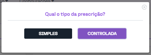 A assinatura das prescrições segue o mesmo fluxo, no entanto existe uma etapa a mais a ser selecionada. Essa etapa é onde o profissional escolhe se a receita será simples, ou se será de para medicações controladas.