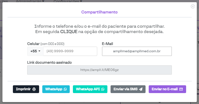 Com o modelo selecionado basta escolher novamente como deseja realizar o compartilhamento com o paciente.