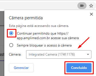 Após escolher a câmera, basta clicar no botão "Concluir" destacado na imagem acima. Ao configurar uma vez, todas as demais telas serão habilitadas automaticamente.