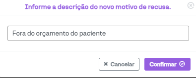 Ao clicar nesse botão, será aberta uma janela para inserir o motivo da recusa a ser cadastrado.