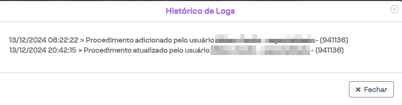 Log do usuário: Ao clicar no ícone de "i", será aberta uma nova janela informando as ações realizadas no item do orçamento, conforme a imagem a seguir.