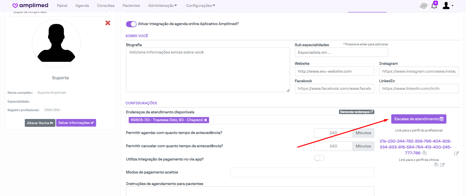 Definir a escala de atendimento do profissional da saúde é uma etapa obrigatória para que o link de agendamento fique disponível.