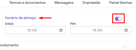 Esta função tem a finalidade de definir um período padrão para que não sejam realizados atendimentos, pois será o horário de almoço. Caso todos os profissionais não tenham o mesmo horário de saída para almoçar, essa função pode ser desativada.