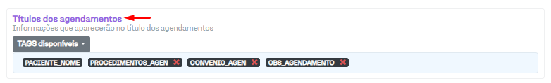Esta opção é usada para definir quais informações serão apresentadas ao criar um agendamento, utilizando as Tags disponibilizadas.