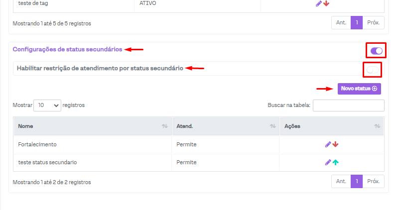Para ver como configurar seus status secundários, acesse o artigo: Configurando os status secundários