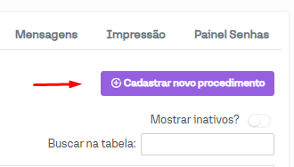Caso precisar reativar um procedimento, primeiro será preciso ir na lista de procedimento e ativar a opção "Mostrar inativos?", para que seja exibidos aqueles que foram desativados.