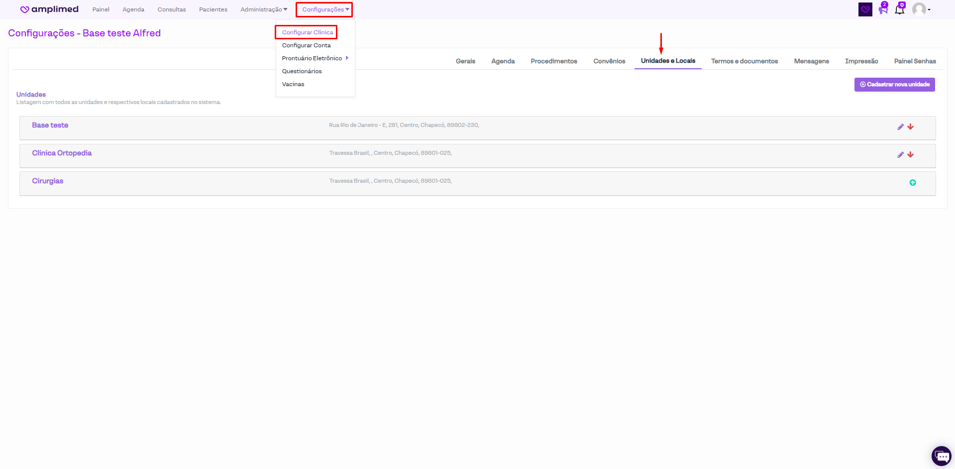 Configurando sua clínica: Unidades e Locais