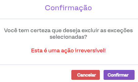 Exceções cadastradas