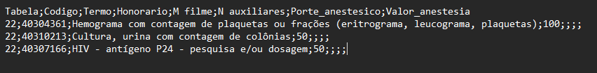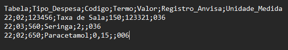 Logo abaixo, está a imagem do conteúdo do arquivo utilizado para o envio.