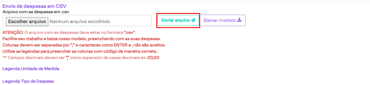 Envio de despesas em CSV
