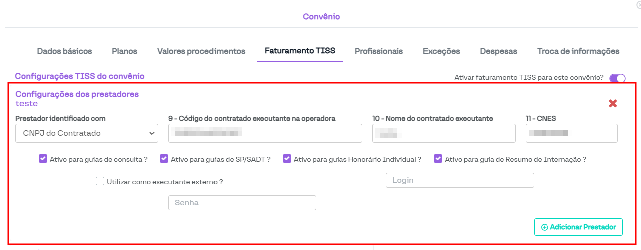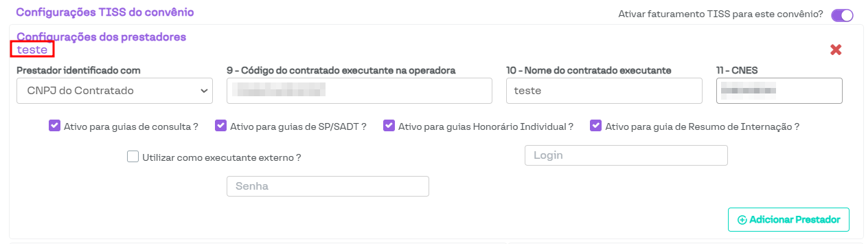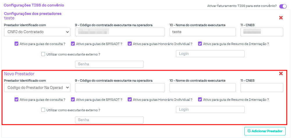 Ativo para guias de consulta?: Informa se o prestador estará disponível para seleção nas guias de consulta.
