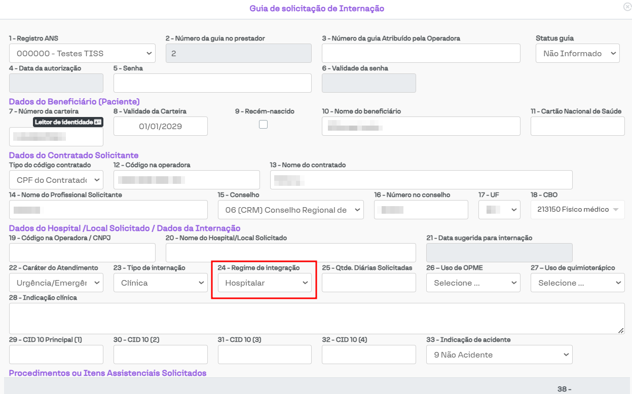 28 - Regime de Atendimento: Permite padronizar o campo com as opções a seguir: