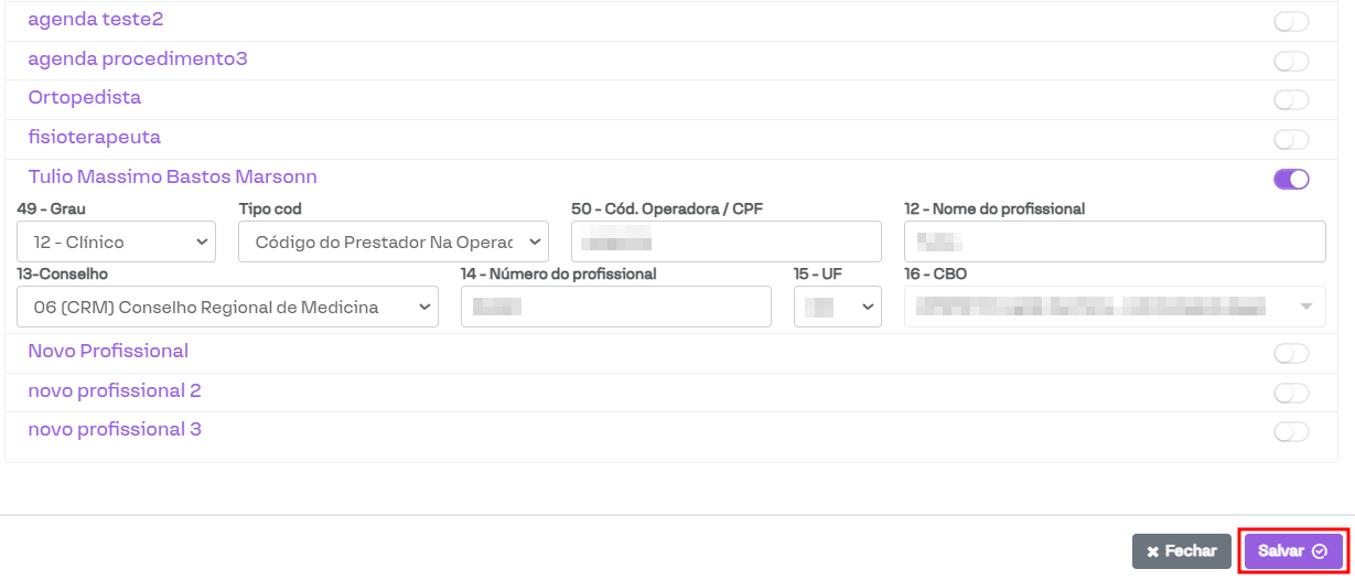 Após preencher os campos, basta clicar em Salvar. Nas próximas guias geradas, será possível incluir o profissional nas guias.