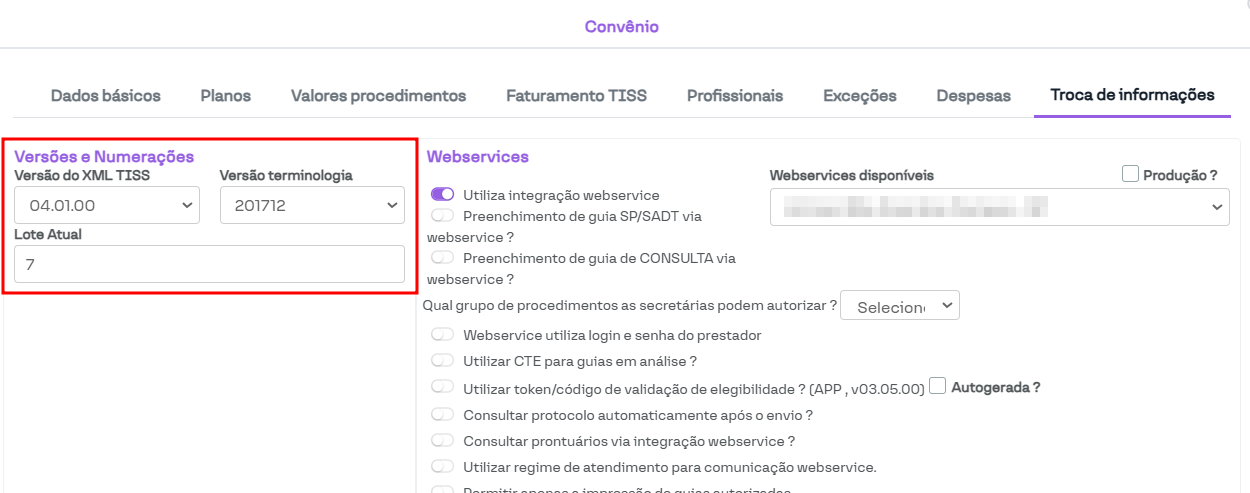 Configurando TISS no convênio - Troca de informações - Outras configurações