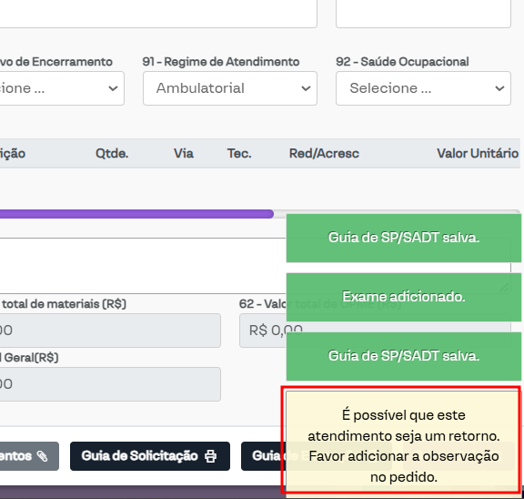 Guia SP/SADT ao incluir procedimento consulta: