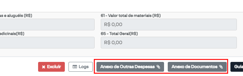 Anexo de outras despesas: Habilita o botão "Anexo de Outras Despesas" na guia, permitindo lançar despesas;