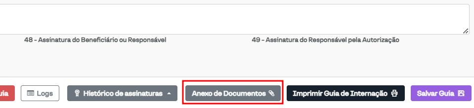 Emissão de "Anexo de documentos" para Guias de Internação: Habilita o botão "Anexo de Documentos" para guias do tipo Internação.