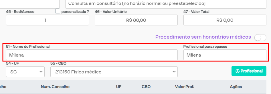 Preencher profissional de repasse com o profissional executante: Ao selecionar essa opção, ao configurar o profissional executante, o sistema preencherá automaticamente o repasse com o mesmo profissional.