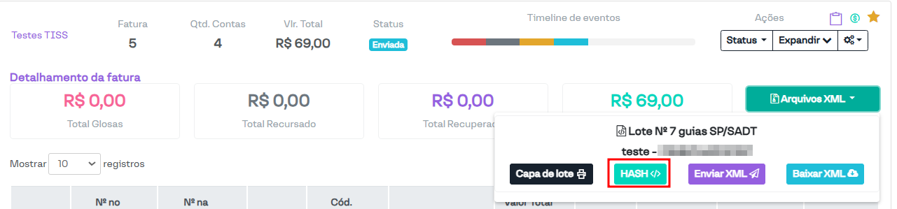 Permitir alteração de HASH no XML dos lotes: Ao ativar essa opção, o sistema permite alterar a hash do arquivo XML gerado, habilitando o botão destacado na imagem a seguir.