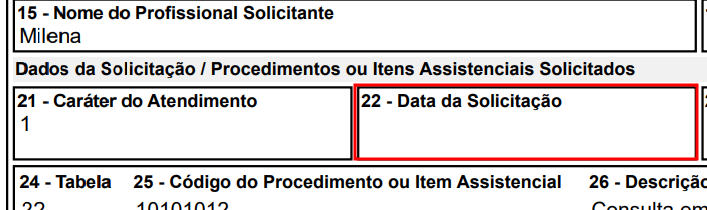 Permitir imprimir guia SP/SADT ocultando a Data de Solicitação: Ao selecionar essa opção, o campo 22 - Data da Solicitação não será exibido na impressão.