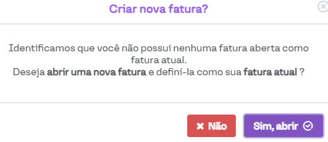 Sugerir abertura de nova fatura após o fechamento da fatura atual: Ao ativar essa opção, ao fechar uma fatura do convênio, o sistema exibirá uma mensagem sugerindo a abertura de uma nova fatura, conforme a imagem a seguir.