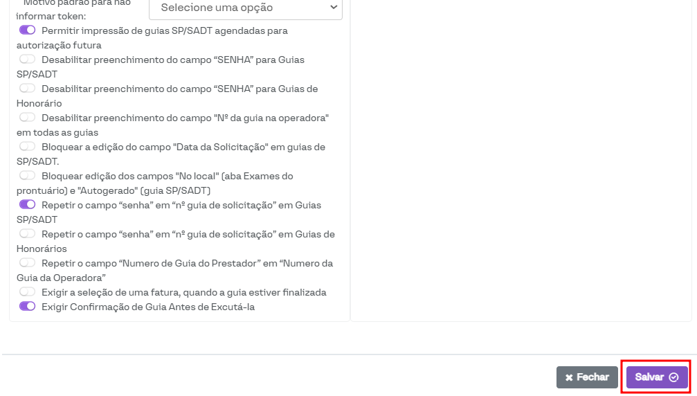Exigir também no cadastro do paciente?: Ao marcar essa opção, a validação também será feita no cadastro do paciente, não apenas no momento de editar a guia.