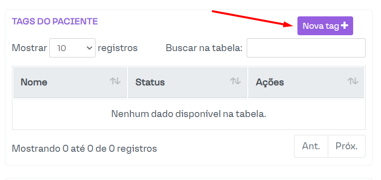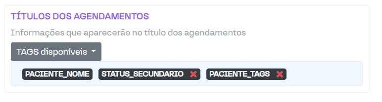 Um método eficaz de destacar informações é usando as tags do paciente, localizadas em Configurações da clinica > Agenda: