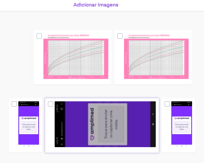 Logo abaixo da seção de incluir mídias, será possível visualizar as mídias de acordo com o tipo de arquivo, os quais detalharemos a seguir.