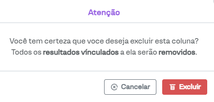 Os campos serão habilitados para edição. Após realizar os ajustes, clique em Salvar. Também é possível excluir a coluna, se desejar. Ao clicar nessa opção, aparecerá uma mensagem de confirmação. Para prosseguir, basta clicar em Excluir.