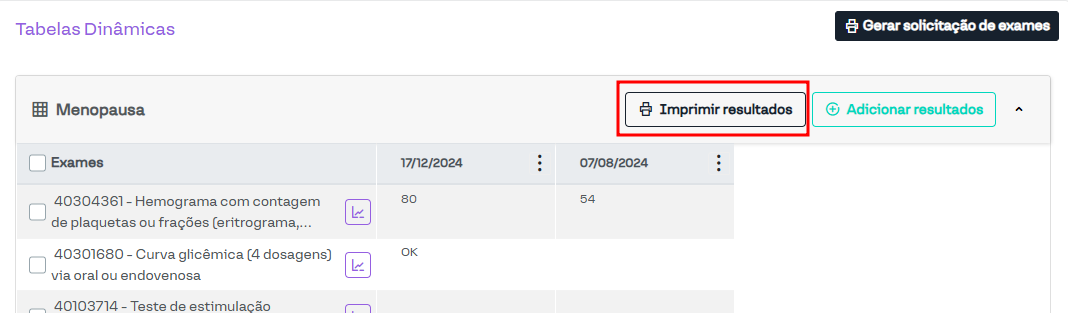 Por fim, é possível imprimir os resultados dos exames clicando no botão Imprimir resultados.