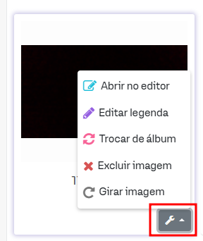 Para visualizar uma imagem em tamanho maior, basta clicar sobre ela. Além disso, algumas ações podem ser realizadas nas imagens ao clicar no ícone no formato de chave de boca, conforme detalhado a seguir.