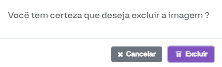 Excluir imagem: Permite excluir a imagem. Ao clicar neste botão, será exibida uma mensagem de confirmação da ação. Para confirmar a exclusão, clique em Excluir.