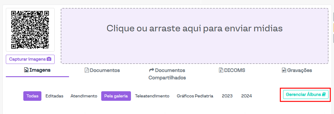 Além disso, é possível Gerenciar Álbuns clicando no respectivo botão destacado na imagem abaixo.