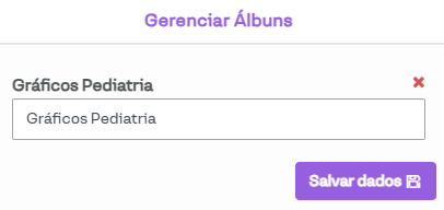 Ao clicar nesse botão, será aberta uma janela com os álbuns já cadastrados, sendo possível renomeá-los, conforme a imagem a seguir. Após realizar os ajustes, clique em Salvar dados.