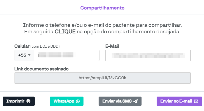 Compartilhar documento: Permite compartilhar o documento novamente com o paciente.