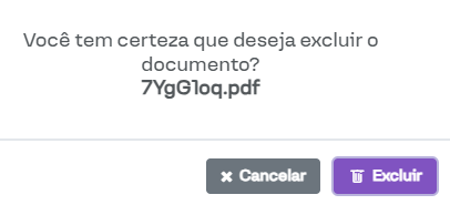Excluir documento: Permite excluir o documento. Ao clicar nessa opção, será exibida uma mensagem de confirmação. Para prosseguir com a exclusão, clique em Excluir.